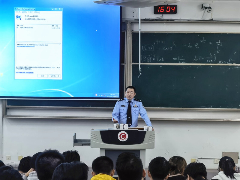 两位警官在法律法规、预防诈骗、网络贷款、生命安全等几个方面作出了详细解释。他们指出,随着科技的进步,诈骗手法不断翻新,网络诈骗也越来越向智能化,诈骗具有隐蔽性和多样性的特点。警官结合最近发生几期的典型诈骗案例来分析,与同学们分享关于防网络诈骗方面的经验。