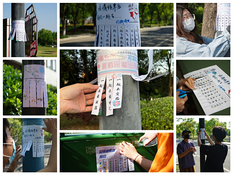 各具风格的手制便利贴上,极具创意的图案文字、小心翼翼的边框剪裁,每一笔都蕴含着激情、每一笔都蕴含着希望。灯柱上、树干上、花坛旁……校园内的各个角落都贴满了“浓浓真情”,成为校园内别样的风景线。“一起吃火锅”、“一起看电影”、“一起去露营”、“一起去海边”、“一起去音乐节”······这些心愿便利贴饱含着同学们对解封校园的期待,承载着“成功抗击疫情”的愿望。